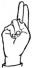 На ћирилици написано ПЕРО КИТИЋ састоји се из 9 слова [?]. Исписано ћириличном једноручном азбуком за глувонеме: